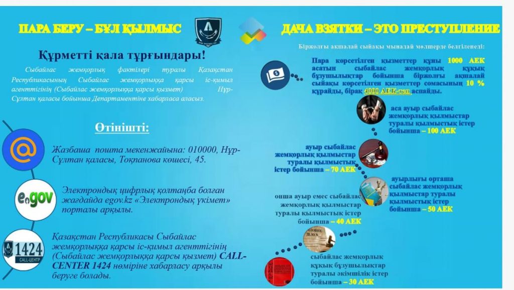 Қазақстан Республикасы Сыбайлас жемқорлыққа қарсы іс-қимыл агенттігінің Астана қаласы бойынша Департаменті сыбайлас жемқорлыққа қарсы ағарту жұмыстарын жүргізуде.